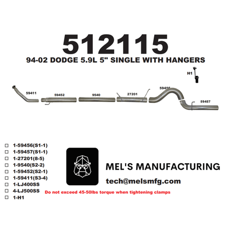 Constructed out of 16 gauge aluminized steel or T409 Stainless, this exhaust system is designed to simplify installation with included clamps, preweld contour bends and improved flanges. Enjoy a noticeable boost in performance, lowered EGTs and amplified air flow with this Mel's system. For powerhouse performance, Mel's delivers - horsepower you can hear!