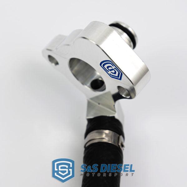 The S&S Diesel Motorsport Gen2.1 6.7L Power Stroke CP4 Disaster Prevention Kit features all quick connect lines that will eliminate the need for cutting the factory supply line, which is a debris introduction point, especially if the cut is not thoroughly deburred. It also eliminates the need to use a compression fitting, which is a potential leak point. The OE-style quick connect lines also eliminate any threaded joints that are further leak points and have the potential of generating debris during install.