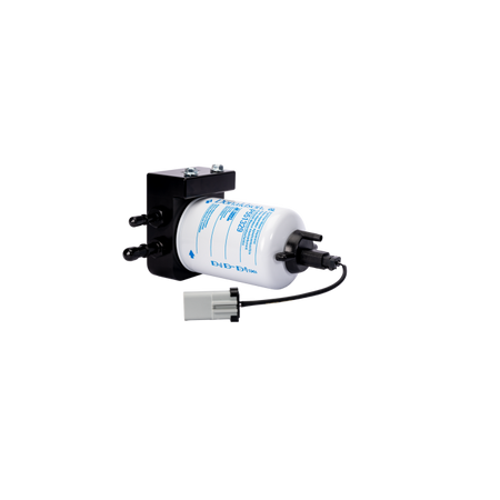 - Anodized aluminum fuel filter base with quick connect fittings